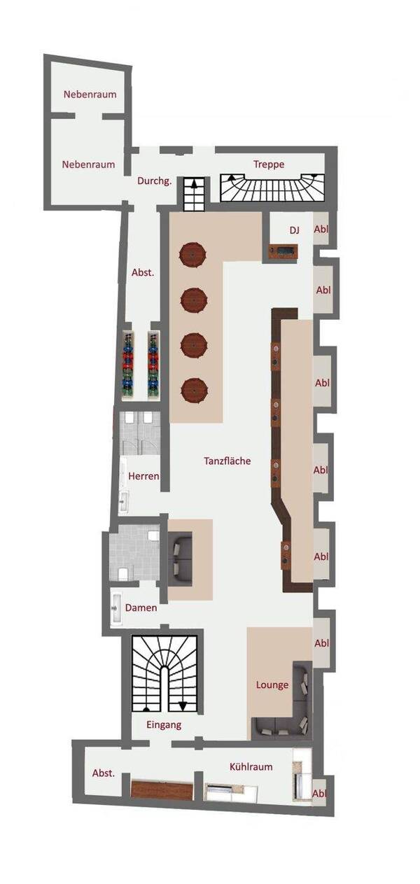 Diese großzügige und offen gestaltete Halle im Kellergeschoss überzeugt durch ihre vielseitige Nutzbarkeit und eignet sich ideal für verschiedenste gewerbliche Konzepte - aktuell als Club betrieben, ...