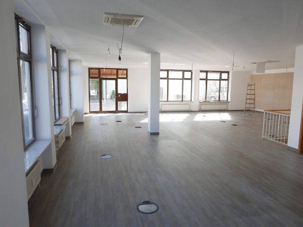 Helle Gewerbefläche für Einzelhandel, Büro- oder Praxisflächen von ca. 150 qm im EG. Durch eine Treppe erreicht man die Kellerräume mit ca. 70 qm. Aktuell hat die Fläche im EG keine Zwischenwände und...