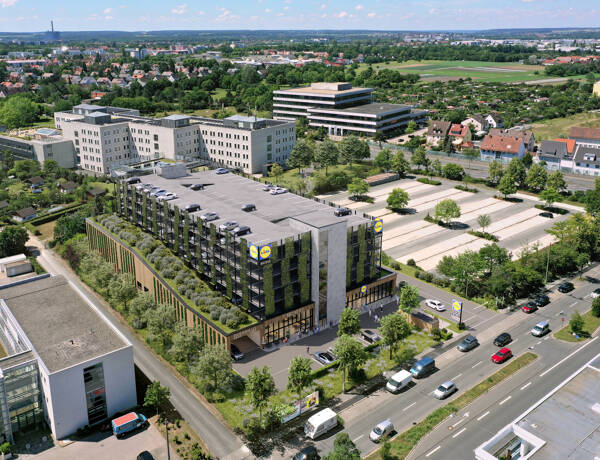 Das Objekt besteht aus insgesamt 5 Stockwerken. Im Erdgeschoss befindet sich die hier angebotene Mieteinheit sowie eine Lidl Filiale. Die 4 Etagen über den beiden Handelsflächen werden durch ein Park...