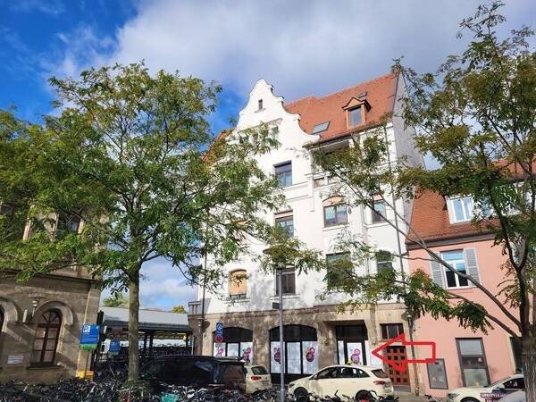 Die Gewerbeeinheit befindet sich im Erdgeschoss eines Wohn- und Geschäftshauses das 1909 direkt am Bahnhofplatz der Universitätsstadt Erlangen errichtet worden ist. Die Räume sind frisch gestrichen. ...